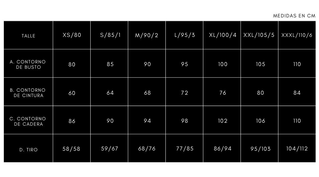 PARA PODER SABER QUÉ TALLE SELECCIONAR ES IMPORTANTE QUE CONOZCAS TUS MEDIDAS. PARA ESO RECOMENDAMOS UTILIZAR UNA CINTA MÉTRICA, Y MEDIR TU BUSTO, CINTURA, CADERA Y TIRO SEGÚN SEA NECESARIO, UTILIZANDO NUESTRA GUÍA.
